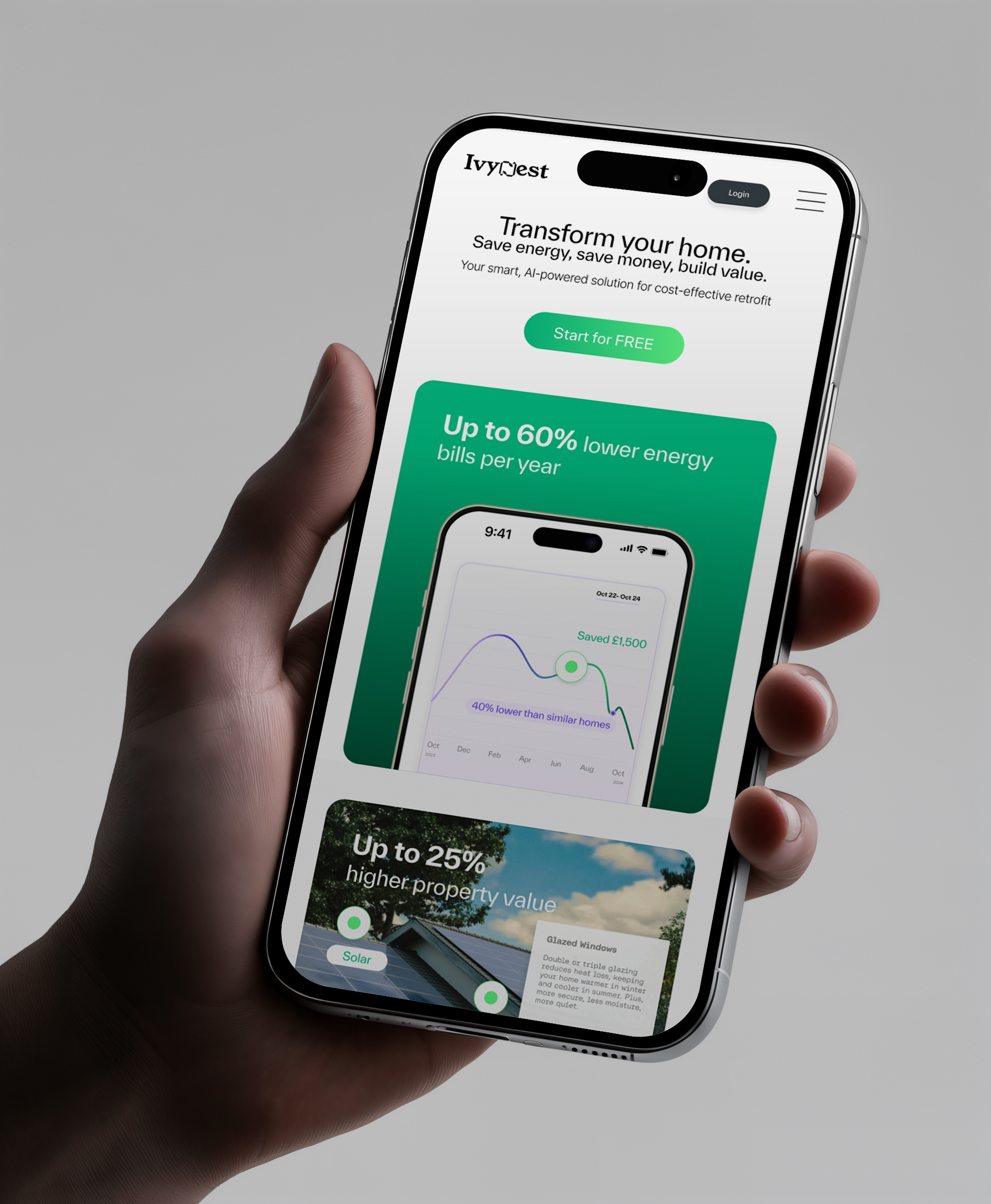 Ivynest is a UK-based Cleantech SaaS using AI to streamline end-to-end home retrofit upgrades, saving energy and building property value.